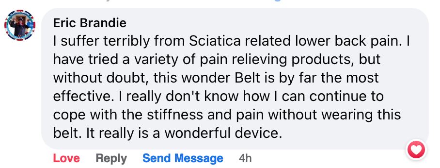 Ever since I started using the belt I could walk better and manage to do house chores which was difficult for me. I feel good and am happy I highly recommend it, it is value for money.