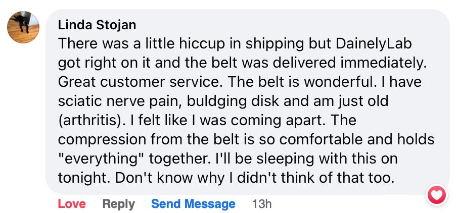 I’m backing up this product 100 % it helped me a lot with my back pain, wore it for 3 weeks and my pain is gone. Thank you Dainty!